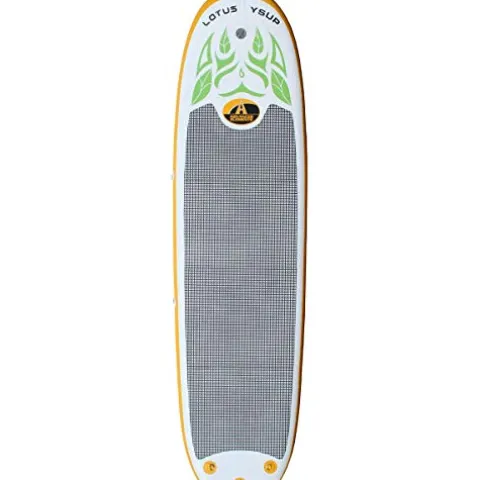 The ADVANCED ELEMENTS Lotus YSUP Yoga Inflatable Stand Up Paddle Board in vibrant orange is designed for ultimate performance and comfort. Crafted with high pressure 6″ thick drop-stitch material, this board offers exceptional stiffness for yoga practice or paddling. Its extra-wide design provides increased stability, while the large traction foam area ensures improved grip and comfort. The double-layer outer skin enhances durability, and the included Single-action Hand Pump with Gauge allows for easy high-pressure inflation. Perfect for yoga enthusiasts and paddle boarders looking for a versatile and reliable board.