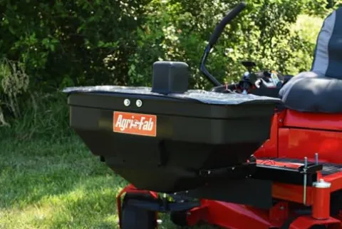 The Agri-Fab 45-0627 Zero Turn Mower Electric Spreader is designed to enhance your lawn care routine with efficiency and ease. Featuring a robust 125 lb rustproof poly hopper and spreader plate, this durable spreader ensures long-lasting performance while covering up to 25,000 square feet, approximately half an acre. With a spread width of up to 12 feet, you can achieve reliable and even coverage of grass seed, fertilizer, or other lawn treatments. The 12V sealed motor powers the unit, while the cable flow control allows for convenient adjustments directly from your mower seat, making lawn maintenance simpler than ever. Upgrade your outdoor tasks with this versatile and user-friendly spreader.
