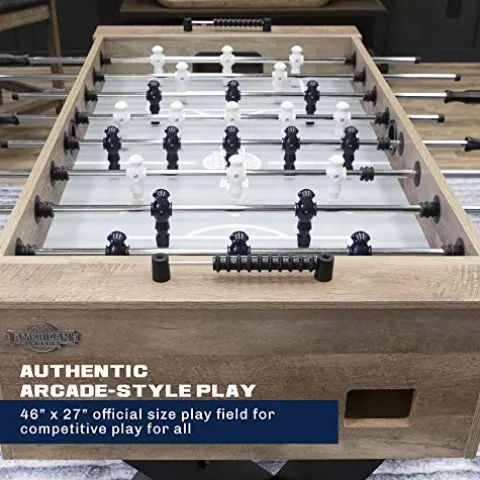 - UNIQUE TWIST, CLASSIC DESIGN – The rustic wood finish cabinet paired with the unique k-shaped legs give the classic design a modern twist. Enjoy arcade-style foosball with a table that looks great in any room in the house