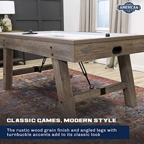 - CLASSIC GAME; MODERN STYLE – The Brookdale’s rustic wood grain finish and angled legs with turnbuckle accents add to its classic look.