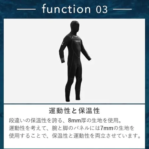 - Super stretch 8/7mm neoprene (petroleum free) for maximum comfort and freedom of movement