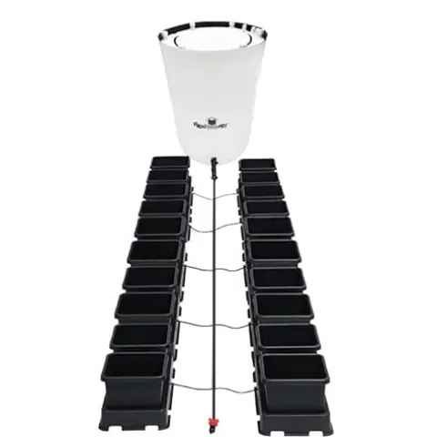 The AutoPot 20Pot easy2grow System is designed for both efficiency and convenience, making it an essential addition to any indoor gardening setup. Featuring 3.9-gallon plastic pots and equipped with AIRBASES and AIRDOMES, this dual-pot self-watering system ensures your plants receive consistent hydration without the hassle of daily watering. Its gravity-fed design seamlessly integrates into grow tents and hydroponic environments, promoting optimal growth and robust yields. With a sleek black finish, the AutoPot system is not only functional but also aesthetically pleasing, while the 60-gallon PRO FlexiTank guarantees ample water supply for all 20 pots. Elevate your growing experience with a system that simplifies plant care and enhances productivity.