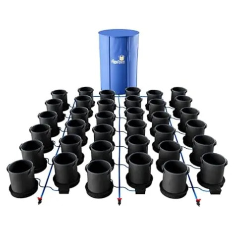 The AutoPot 36 Pot XXL System revolutionizes your indoor gardening experience with its innovative self-watering, gravity-fed design. Featuring nine spacious 9-gallon pots, this system ensures your plants receive consistent hydration without the need for complicated setups or electric pumps. The included 105-gallon FlexiTank offers ample water storage, making it ideal for hydroponics and grow tents. Crafted in a sleek black finish, the AutoPot system combines functionality with a modern aesthetic, allowing you to maximize your growing potential effortlessly. Perfect for both novice and experienced growers, this system simplifies plant care while promoting healthy, thriving growth.