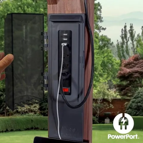 - Powered Up: Patented PowerPort features 3 electrical outlets and 3 USB ports to power your outdoor living space, mounting easily to any post on the structure (power source not included)