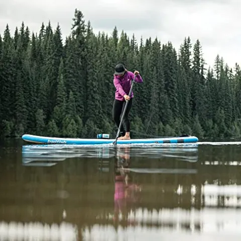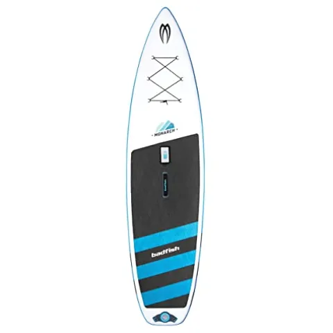 The Badfish Monarch Inflatable Stand Up Paddle Board is your go-to choice for adventure on the water. This package includes essential accessories like a dual-action pump, breakdown travel paddle, backpack board bag, and an 11’ coil ankle leash. With dimensions of 11′ x 34″ x 5″ and a board weight of 27lbs, it can accommodate riders weighing between 100lbs to 260lbs. The board features a 6-point tie-down system, unbreakable tri-fin design, integrated water bottle holder, extra-wide padded carry handle, and comes with a 3-year warranty for added peace of mind. Get ready to hit the waves with this durable and versatile stand-up paddle board from Badfish.