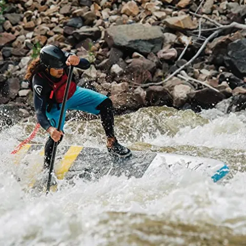 The Badfish River Shred Inflatable Stand Up Paddle Board is the ultimate companion for your water adventures. Designed by Badfish, this board in a striking White/Yellow color is not only stylish but packed with features. With a 6-point tie down system, removable tri-fin for versatile paddling options, extra-wide padded carry handle for easy transport, integrated GoPro mount in the bow handle for capturing your moments, and a reassuring 3-year warranty, this paddle board is a top choice for both beginners and advanced paddlers. Complete with a backpack travel bag and pump, get ready to hit the water and enjoy the thrill of paddleboarding with ease and style.