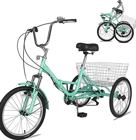 The Barbella Adult Folding Tricycles Folding Bikes are a reliable and convenient mode of transportation for adults, women, men, and seniors. With a sturdy steel construction and a large load capacity of up to 300-360 lbs, these 3-wheel adult trikes provide stability and durability for daily use. The folding design allows for easy storage and transportation, with sizes ranging from 20 to 26 inches. Equipped with a 7-speed derailleur for smooth shifting and a comfortable ride, these trikes also feature height-adjustable handlebars and a soft padded seat for a pleasant riding experience. Safety is a top priority with front V brakes and a large rear basket for carrying items, making these foldable tricycles perfect for recreation, shopping, or exercise.