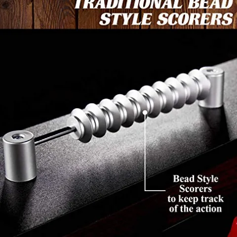 - CRAFTMANSHIP: The foosball table has a woodgrain PVC laminate over MDF. Goal boxes return your tabletop soccer ball after each goal. The traditional bead-style slide scorer keeps track of the action.