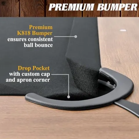 - PLAYING SURFACE & BALL ROLL: Black polyester felt covers the 72-1/4” x 36-1/8” pool table playfield. The table also includes traditional drop pockets with custom caps and apron corners. The rubber K818 bumper ensures a consistent ball bounce