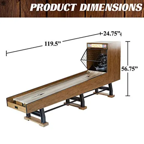 - PLAYING SURFACE & BALL ROLL: The game table has a 12mm thick one-piece playing surface made of engineered wood for a smooth ball roll. At 10’ long, 24.75” wide, and about 4.75’ tall, it brings fun and competition to your arcade game room.