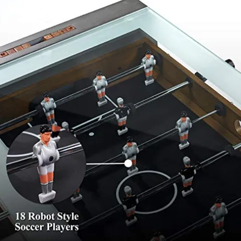 - URBAN STYLE COFFEE TABLE: Elevate your home game room with a stylish 40” foosball table that doubles as a coffee table. The table boasts a 30”x20” playfield and a transparent tempered glass top that effortlessly converts into a functional coffee table.