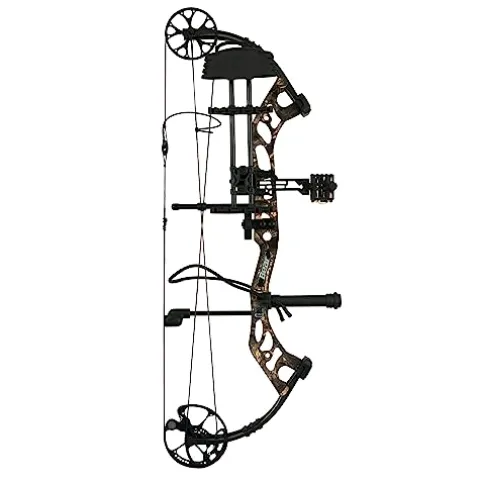 The Bear Archery Prowess Ready to Hunt Compound Bow Package is expertly designed for women and youth, offering an exceptional blend of performance and comfort. Finished in the stunning Mossy Oak Break Up Country DNA, this bow features a smooth draw cycle thanks to its perimeter weighted single cam, which minimizes recoil for a more enjoyable shooting experience. The innovative Rockstops offset string suppressor effectively reduces vibration, ensuring quieter shots. With the FH1 Rotating Module Single Cam System, users can easily adjust the draw length for a customized fit. This package is fully equipped with a complete Trophy Ridge accessory bundle, making it the ideal choice for those ready to hit the field with confidence and style.