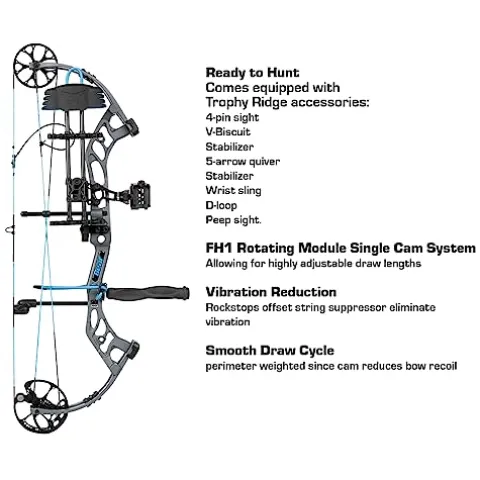 - READY TO HUNT: Bow comes ready-to-hunt with a complete Trophy Ridge accessory bundle