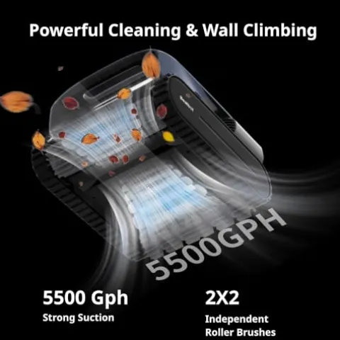 - Unprecedented Cleaning Power: The industry-first NonaDrive 9-motor system delivers a powerful 5500 GPH water flow rate for effective wall climbing and debris suction. Paired with extra-long 2×2 roller brushes and a dual-track drive system, it ensures expanded coverage and efficient navigation through complex inground and above-ground pools environments