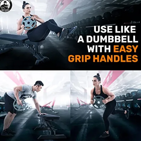 - 💪Precision Grip Handles – Loading cast iron weight plates onto the bar and re-racking plates a breeze, thanks to its ergonomic handles! — Comfort grip also allows the plates to be used for exercises like steering wheels and farmers’ carries.