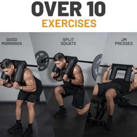 - 💪 Versatile – More than 10 exercises in one Squat Bar! Use it for front squats, Hatfield squats, good mornings, lunges, split squats, JM presses, and more! And when you’re used to immobility and injuries holding you back, a versatile bar like this is a serious godsend.