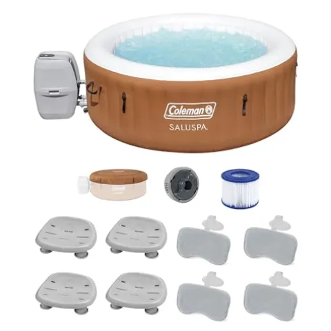 Transform your backyard into a personal oasis with the Bestway Coleman Miami AirJet Inflatable Hot Tub. This sleek black spa offers a rejuvenating experience with 120 bubbling jets, accommodating 2 to 4 people at a soothing 104°F. The EnergySense cover not only enhances warmth but also boosts energy efficiency by 40%, complying with standards in select states. Made with DuraPlus 3-layer material, it resists punctures and stretching, while the Freeze Shield function protects components in cold weather. Enhance relaxation with a 4-pack of SaluSpa Spa Seats, allowing adjustable heights for perfect comfort, alongside 4 padded headrest pillows featuring washable mesh for easy maintenance. Experience unmatched tranquility and style with this comprehensive hot tub package.