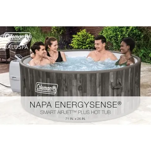 - Airjet Hot Tub: Round Napa hot tub provides a soothing massage experience with 180 bubbling warm jets for up to 5 to 7 people and reaches up to 104 degrees Fahrenheit for ultimate relaxation