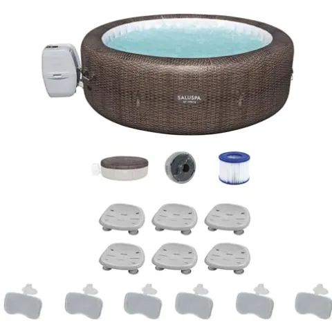 Transform your backyard into a personal oasis with the Bestway Coleman St Moritz AirJet Inflatable Hot Tub. Designed to accommodate 5 to 7 people, this luxurious hot tub features 180 bubbling warm jets that provide an unparalleled massage experience, reaching soothing temperatures up to 104°F. The EnergySense cover enhances efficiency by being 40% more energy-saving, meeting stringent energy standards in multiple states. Constructed with DuraPlus 3-layer material, this hot tub is exceptionally durable, offering 33% more resistance to punctures and 56% more resistance to stretching than standard PVC. Enjoy year-round relaxation with the Freeze Shield automatic heating function, protecting the tub’s inner components from freezing. Included are six SaluSpa Spa Seats with adjustable heights and three washable padded headrest pillows, ensuring comfort and luxury at every use. Elevate your relaxation experience with this feature-rich inflatable hot tub.