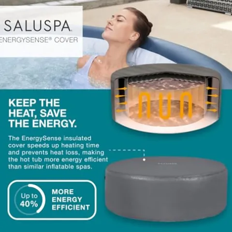 - Energy Efficiency: EnergySense cover is 40 percent more energy efficient, keeping your hot tub warmer throughout the season; Water capacity (80 percent filled): 242 gallons