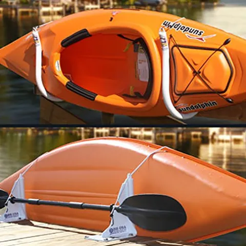 Keep your kayaks secure and organized with the Aluminum Dock Mount Kayak Racks from BH-USA. These silver racks are designed for heavy-duty use with their all-aluminum construction and come equipped with convenient features like a built-in paddle holder. Sold in pairs, these racks include bungee cords for added security and stainless mounting hardware for easy installation. Whether you’re a seasoned kayaker or just starting out, these kayak racks provide a reliable and efficient storage solution for your watercraft.