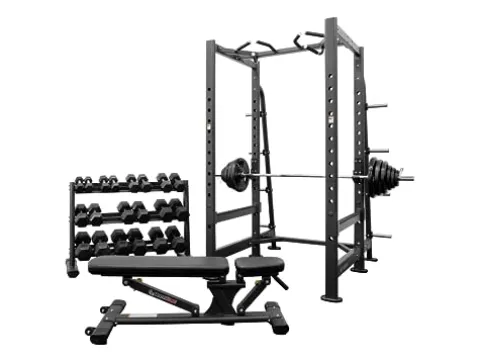 The BodyKore Garage Gym Package, by BK BodyKore, is the ultimate setup for your home gym. This package includes the Signature Series Squat Rack Power Cage – G256 for versatile strength training, the BodyKore Series Commercial Multi-Adjustable Bench – G206 for comfortable and stable bench pressing, a 300lb Rubber Olympic Weight Set for challenging workouts, and a 5-50lb Rubber Hex Dumbbell Set with Rack for targeted strength training. Available in sleek black and silver colors, this package is designed to help you achieve your fitness goals efficiently and effectively.