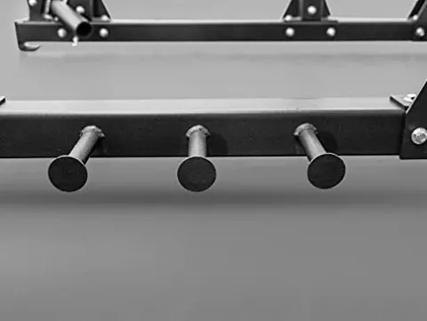 - Bar pegs, land mine, j hooks, band hooks, dip bar attachments included
