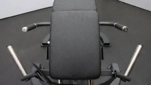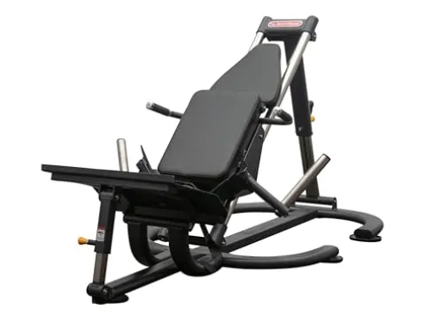 - Backrest lies down and seat pad hinges up for hip thrust exercises.