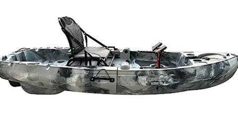 Experience the ultimate convenience and performance on the water with the BKC FPK 8-Foot Single Foldable Kayak in Grey Camo. Perfect for both travel and storage, this kayak features a unique folding hull that transforms into a full-sized vessel when unfolded. Equipped with a fully loaded deck including fishing rod holder spots, cup holders, and ample storage, you’ll have everything you need for a successful day on the water. The smooth flipper-style pedal system and hand-operated rudder offer exceptional speed and maneuverability, while the included flipper drive system, aluminum seat, rod holders, and full-sized paddle ensure you’re ready for your next adventure.