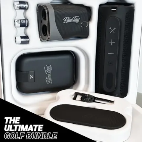 Enhance your golf game with the Blue Tees Golf Player Pack Bundle – Series 3 Max Rangefinder, Magnetic Speaker, Divot Tool, and Magnetic Hub. The Series 3 Max Rangefinder offers high-precision distance measurements with 7x magnification, making club selection a breeze. Its adaptive slope switch factor in inclines and declines for accurate readings, with a built-in magnetic strip for convenient attachment to metal surfaces. The Player Speaker delivers premium sound quality and can be paired with another speaker for an immersive experience. Attach it to your golf cart or any metal surface with its super strong magnet. Elevate your golfing experience with this comprehensive bundle from Blue Tees Golf.