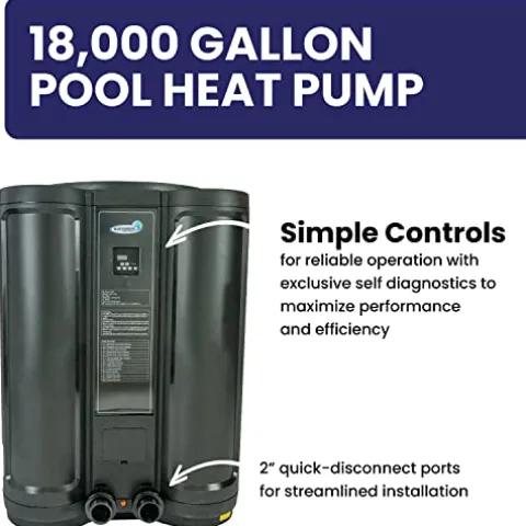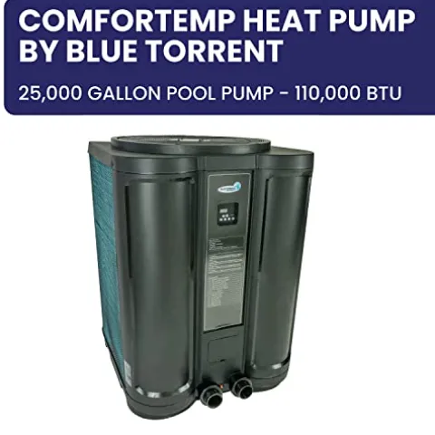 The ComforTemp Heat Pump by Blue Torrent is a powerful and efficient solution for heating pools up to 18,000 gallons. With a robust 95,000 BTU capacity, this heat pump from Blue Torrent Pumps features an evaporation condenser made of corrosion-resistant titanium, ensuring longevity and durability. By converting warm ambient air into hot water, this pump significantly reduces energy costs while maintaining high performance levels. The exclusive self-diagnostics system and easy-to-use programming controls make operation seamless, while the 2″ plumbing with unions ensures a secure fit. Ideal for 220V systems with a 42A minimum breaker requirement, this heat pump also offers a maximum breaker capacity of 60A for added versatility. Enjoy a comfortable and cost-effective pool heating experience with the ComforTemp Heat Pump by Blue Torrent.