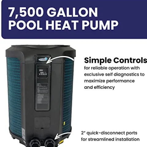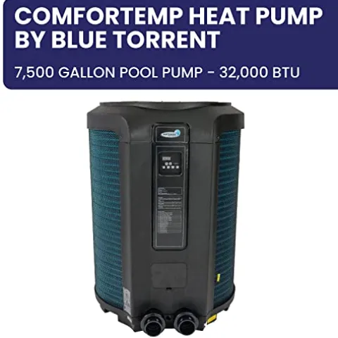 The ComforTemp Heat Pump by Blue Torrent is the ultimate solution for efficient pool heating, designed to cater to pools up to 7,500 gallons. Delivering a powerful 32,000 BTU, this pump combines style and durability with its sleek blue and black design and a corrosion-resistant titanium evaporation condenser. By compressing warm ambient air into hot water, it significantly reduces energy costs while ensuring optimal performance. The advanced self-diagnostics feature keeps the system running smoothly, and easy programming controls offer user-friendly operation. Suitable for 2″ plumbing with unions and requiring a 220V, 10 Amp breaker, this heat pump is a smart investment for any pool owner looking for reliable and efficient heating.