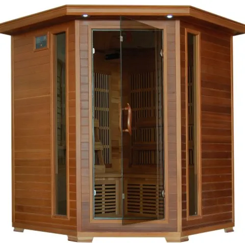 Step into the world of luxury with the Whistler 4-Person Corner Cedar Heatwave Sauna by Blue Wave. This sauna brings the spa experience to your home with its Canadian red cedar construction that insulates heat and resists warping. Equipped with 10 low-EMF carbon infrared heaters, reaching temperatures of up to 140 degrees F, this sauna ensures a soothing and relaxing experience. The sauna is backed by CE, CETL, RoHS, and ISO 9001 certifications, guaranteeing top-notch quality, safety, and professional manufacturing. Enhance your relaxation with the chromotherapy lighting system, allowing you to unwind in style and comfort.