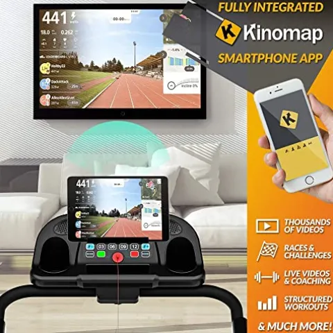 - INTEGRATED SMARTPHONE KINOMAP APP: The treadmill is compatible with the Kinomap fitness app – featuring thousands of training videos from around the world, coaching & training classes & structured workouts. Join the Kinomap community today!