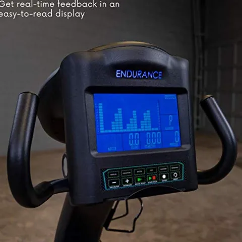 Enhance your indoor cycling experience with the Body-Solid Endurance B4RB Recumbent Exercise Bike. This sleek black bike from Body-Solid offers a light commercial grade quality with features designed for your comfort and convenience. The adjustable seat and multiple resistance levels cater to users of all fitness levels, while the easy-to-read display screen keeps track of your workout progress. The walk-through design, compact structure, and transport wheels make this bike both functional and easy to move around, perfect for any home gym or fitness studio.