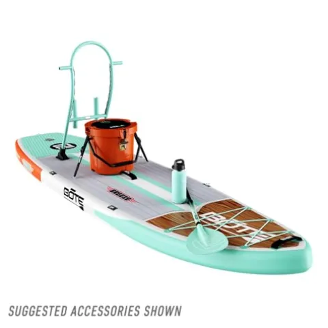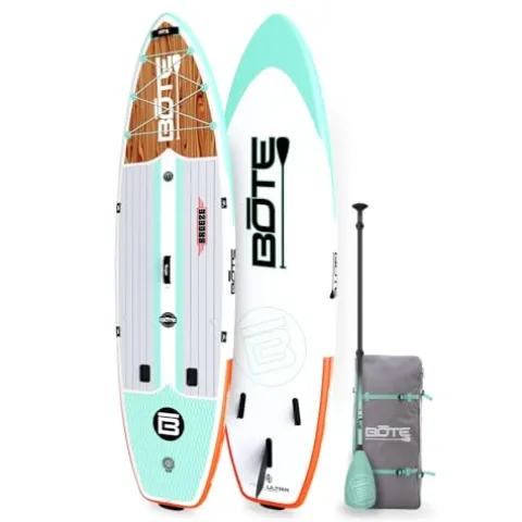 The BOTE 11’6″ Breeze Aero Inflatable Stand Up Paddle Board in Classic Mangrove is a versatile choice for adults, kids, and families seeking adventure on the water. This iSUP is equipped with Rac Receivers, including the innovative MAGNEPod magnetic base for easy drink retention. With dimensions of 11’6″ L x 33″ W x 6″ D and a weight capacity of 315 lbs, this board is stable and spacious. Weighing just 22 lbs on average, it’s lightweight and easy to transport. The package includes the Breeze Aero board, a 3-piece adjustable SUP paddle, a removable Aero center fin, a hand pump, and a convenient travel bag, making it perfect for travel-friendly water excursions.