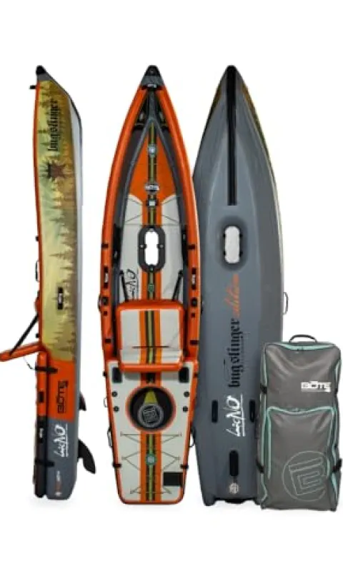 The BOTE Lono Aero Inflatable Kayak Convertible Stand Up Paddle Board in the Bug Slinger Backwater color is the ultimate versatile watercraft for single riders, adults, and kids alike. Designed to be family-friendly and perfect for fishing, this kayak boasts extreme stability for confident standing casts and increased visibility. The lightweight AeroBOTE Construction allows for easy transportation and storage, transforming from a travel bag to a floating private island in minutes. With features like Pedal Drive compatibility for optional pedal power, MAGNEPOD compatibility for secure drink storage, and Rocket Rac with 4 rod holders, the BOTE Lono Aero is a top choice for those seeking a high-performance inflatable kayak that can do it all.