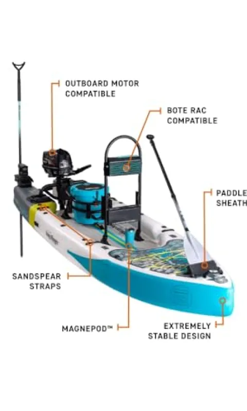 - Go Farther, Faster: The Rover Aero can be outfitted with an outboard motor, allowing you to go much further than a traditional paddle board, and then when you get there, still have the ability to paddle in with stealth.