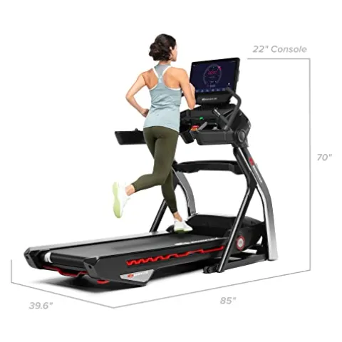 Enhance your home workout routine with the BowFlex Treadmill 22 in sleek black. Featuring -5% to 20% motorized decline/incline, extended handlebar grips, and a Bluetooth-enabled heart rate armband, this treadmill offers a versatile and motivating exercise experience. Enjoy a 2-month free trial of the JRNY All-Access Membership, providing adaptive workouts, inspiring trainers, and streaming entertainment. Stream your favorite shows while you exercise and explore over 200 virtual courses. With all-in-one tracking, monitor your progress and achievements effortlessly. Powered by an operational horsepower up to approximately 1.9HP motor, this treadmill is designed to elevate your fitness journey.