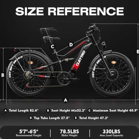 Experience the ultimate thrill of riding with the Brigittebike Electric Bike for Adults. This high-performance dual-motor ebike boasts a powerful 1500W peak output, reaching speeds of up to 37MPH with a torque of 80N·M*2, making hill climbs a breeze. Equipped with a large capacity 52V 21Ah lithium battery providing a range of 50 miles, this bike ensures long-lasting adventures. The full suspension system, along with 26″ x 4.0 fat tires, offers a smooth and stable ride on any terrain. With three riding modes to choose from, including Pas, electric, and sports mode, along with additional accessories included, such as a rearview mirror, helmet, and more, this electric bike guarantees an exhilarating and safe journey every time.
