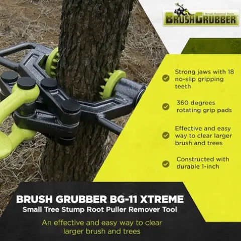The Brush Grubber BG-11 Xtreme Brush & Tree Stump Root Puller Tool offers a powerful solution for removing larger brush and tree stumps with ease. Featuring rugged handles, durable 1″ steel construction, and 18 gripping teeth, this 4-pack set ensures efficient and effective removal of stubborn roots. Designed by Brush Grubber, a trusted brand known for quality outdoor tools, this puller tool is a must-have for any landscaping or forestry project.