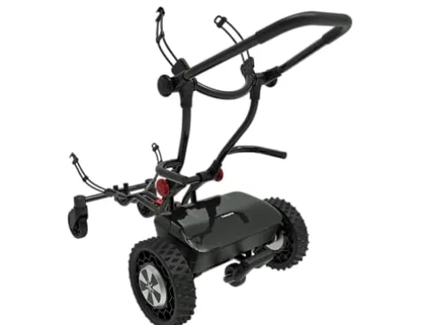 The CaddyTrek R2 by CaddyTrek Caddies is a sleek and efficient golf caddy in black, offering a range of convenient features. With multi-operational modes including March, Follow, and RC, this caddy adapts to your needs on the course. Its compact, light three-way folding aluminum frame allows for easy storage and transport, while the lightweight lithium-ion battery ensures up to 36 holes on a full charge. Equipped with advanced robotic technology, the CaddyTrek R2 provides smooth turning and tracking for optimal performance. Enjoy top quality and functionality with this innovative golf caddy.