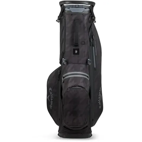 The Callaway BG CG STN FWY+ HD Char Hounds 24 EU golf bag in Charcoal Houndstooth is an innovative and fully waterproof carry bag designed for ultimate convenience on the course or when mounted on a trolley. Constructed from durable 10k waterproof fabric with fully sealed seams, this bag offers ample storage and organization options. It features Lowrider 2.0 Technology for a secure trolley connection, EVA cushioned hip pads, and an anamatic strap system for comfortable carrying. With five-way full-length dividers and the Shaft Shield technology, this bag ensures your clubs are well-protected from wear and tear.