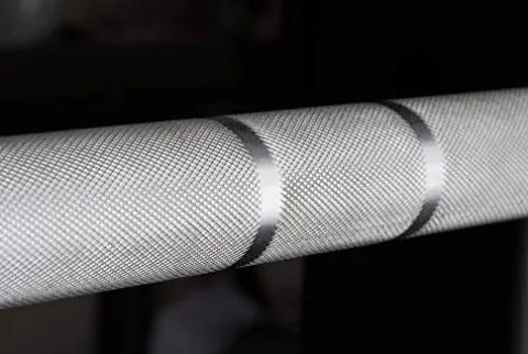 - SPECIFICATIONS – The optimal Olympic bar for strength training or residential Gym. It is 2200mm long w/a 25mm grip; 8 sets of precision needle bearings; Dual markings in the knurling for Olympic Weightlifting & Power lifting movements; no center knurling