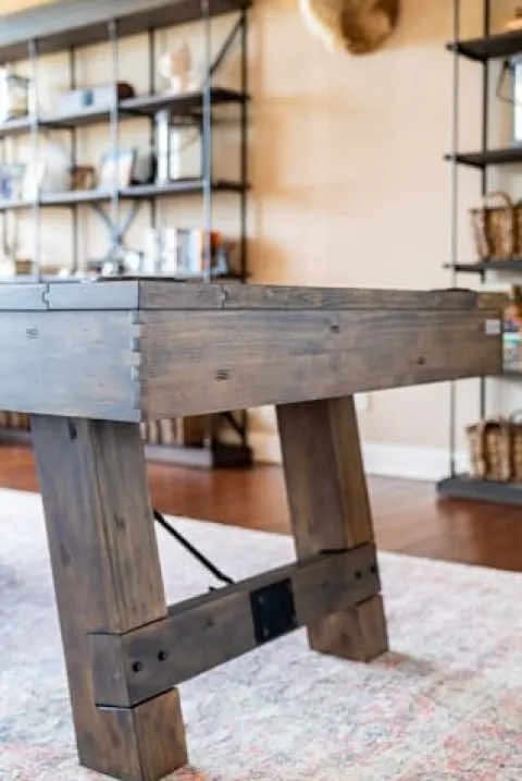 Upgrade your game room with the Aspen Nights Handcrafted Distressed Wood 7′ Pool Table by Chamberlain Game Tables. This stunning pool table features a unique distressed wood design in brown and black, adding a touch of rustic elegance to your space. Complete with essential accessories including two 57″ pool cues, full-size billiard balls, a solid wood triangle, table brush, and cue tip chalk, this pool table is ready for hours of competitive play and entertainment. Perfect for both casual games with friends and serious players, the Aspen Nights Pool Table combines style and functionality for a top-tier gaming experience.