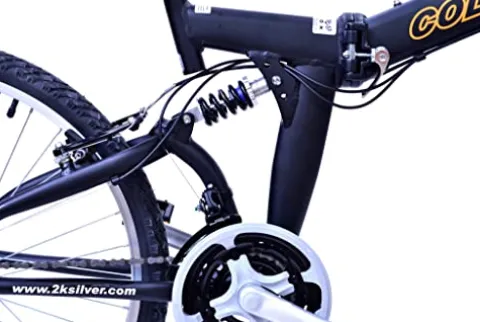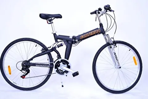 Experience the ultimate convenience and performance with the Columba Alloy Folding Bike. This 26-inch bike in sleek black features a folding alloy frame and suspension fork for easy storage and smooth rides. With an 18-speed shifter and derailleur, Zoom tracker 327v front suspension, rear alloy body spring suspension, alloy crank arms, V-brakes, and alloy rims, this bike is built for durability and agility. The quick removable front handle stem and foldable bearing pedals add to its practicality, making it perfect for urban commutes or weekend adventures.