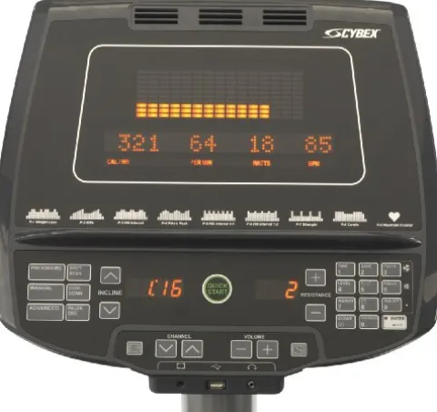 Enhance your fitness routine with the CYBEX 750AT Total Body Arc Trainer. This innovative fitness machine combines the best elements of a skier, elliptical trainer, and climber to provide a comprehensive workout experience. The Reverse Arc motion technology engages your quads and glutes, maximizing calorie burn while reducing stress on your joints. With 8 preset programs, 9 custom programs, and a full split-level display, you can easily track your progress and tailor your workouts to your fitness goals. Built to last with a 400-pound capacity and backed by a 10-year frame warranty, this sleek black machine measures 36.75 x 62.5 x 77 inches (W x H x D), making it a versatile and durable addition to your home gym.