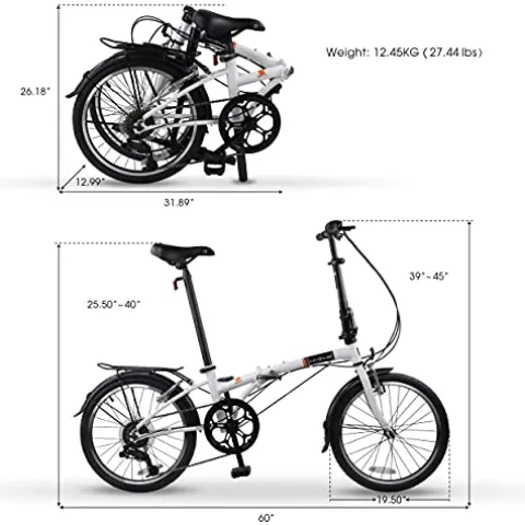 - 【Lightweight Folding Bike】Designed for leisure and daily commuting, this DAHON 20″ folding bike has a folded size of 31.5”(L) x 13.6” (D) x 26.18” (H), and weighs only 25.7lbs. This makes it quite compact and easy to stow away into the trunk of most cars. Suitable for a rider height from 4’9” to 6’2” and a maximum rider weight of 230lbs.