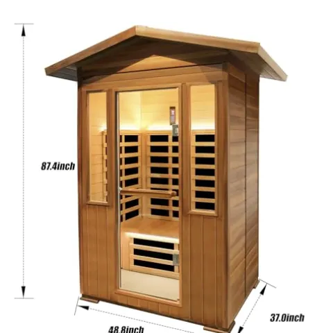 - [Perfect outdoor sauna 2 person Experience]: The sauna room has 2 colored lights, 2 reading lights and 2 Bluetooth speakers. After a long day at work, you can relax in the home sauna while reading, listening to music, etc. It can lose weight, improve skin tone, relieve stiffness and joint pain, increase blood circulation, promote more peaceful sleep, reduce stress and improve overall energy levels.
