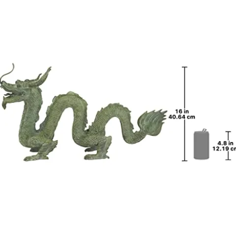 The Design Toscano Asian Dragon of The Grand Temple Cast Bronze Garden Statue is a stunning centerpiece that elevates any outdoor or indoor space with its intricate craftsmanship and vibrant green hue. Crafted using the traditional lost wax bronze method, this statue showcases the artistry of skilled artisans who hand-finish each piece, ensuring a unique and high-quality product. Exclusive to the Design Toscano brand, this statue is not only a striking decorative element but also a symbol of strength and protection, making it an ideal addition to your home or garden.